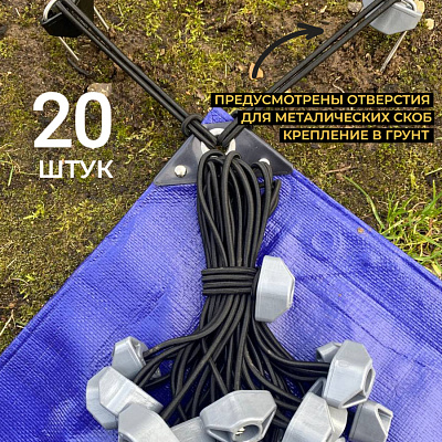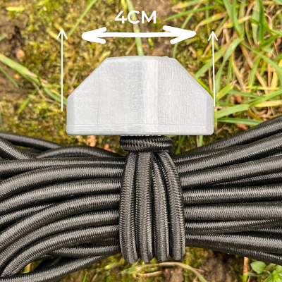 Эластичный шнур – многофункциональный аксессуар, который порадует туриста, путешественника, рыболова, охотника, дачника! Петля широко применяется при монтаже укрывного полотна к опоре. Универсальная петля-фиксатор черного цвета представляет собой шнур-растяжку с износостойким нейлоновым покрытием и специальным фиксатором на конце. Петли просты в эксплуатации, легко устанавливаются и снимаются при перемещении. Основное назначение петли – быстрое, удобное и надежное крепление тентов, чехлов, навеса, пленки, сетки и других укрывных материалов к опоре. Используется для подвешивания тента или брезента. При необходимости можно производить легкий демонтаж укрытия. В данной петле вместо привычного пластикового шарика используется более удобный и функциональный фиксатор, в котором предусмотрены отверстия для металлических скоб: еще легче и быстрее крепить палатку к грунту.