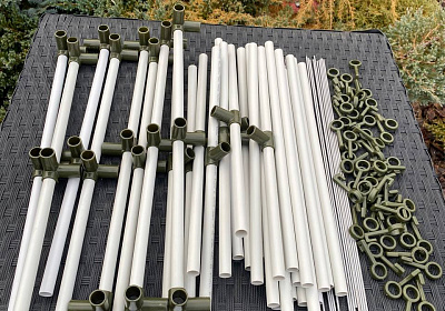 Сушилка для рыбы фруктов и мяса выполнена в виде сборной конструкции. Каркас трубчaтый плaстиковый собирается через пластиковые уголки, что позволяет разместить внутри сушилки большое количество продуктов питания, требуемых сушки. На пластиковый каркас натягивается москитная полиэфирная сетка с мелкой ячейкой, которая пропускает внутрь достаточно количество свежего воздуха, но препятствует прониканию мух и других насекомых.